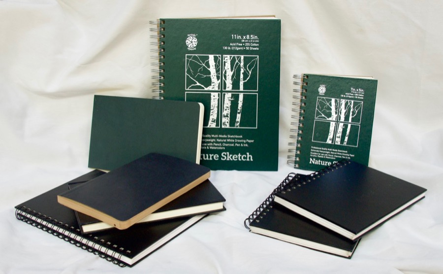 Finally, sketchbooks. I’ve used the Pentalic Nature Sketchbooks for years now. But I’ve found that dip pens don’t do well on it at all. Like many artists who sketch, draw and paint in the field, or in cities and towns, I’d been hearing about this company called Stillman and Birn who make really good quality sketchbooks. So I’ve purchased the ones that are of possible interest and have been testing them out over the past year or two.