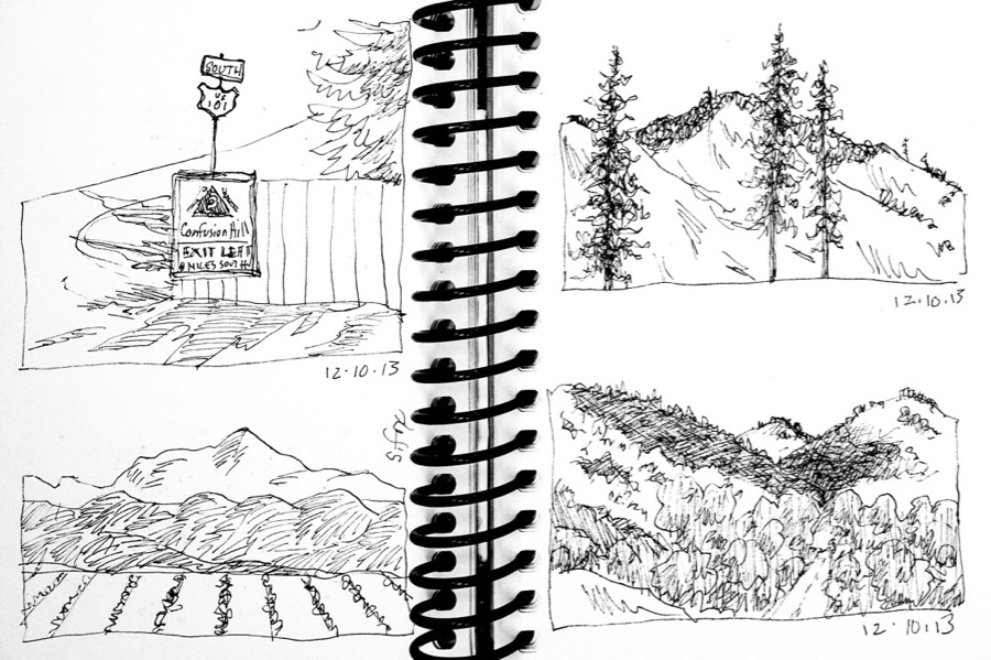 You can sketch anywhere…in your house or outside in your yard, your apartment balcony, parks, beaches, forests, deserts. You can draw the plants in your doctor’s office while you wait. The dog who’s hanging around at the feed store. I’ve sketched while my husband is driving as we travel down to the San Francisco Bay Area. That was a great exercise in visual memory and getting the essential shapes down fast.
