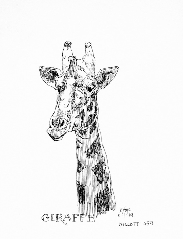 I sketched the Rothschild’s giraffe with a Gillott 659 crowquill. I was particularly interested in tracking down this nib since it was used extensively by artist and author Joseph Pennell.