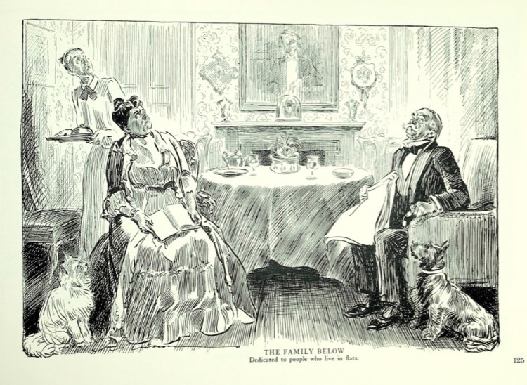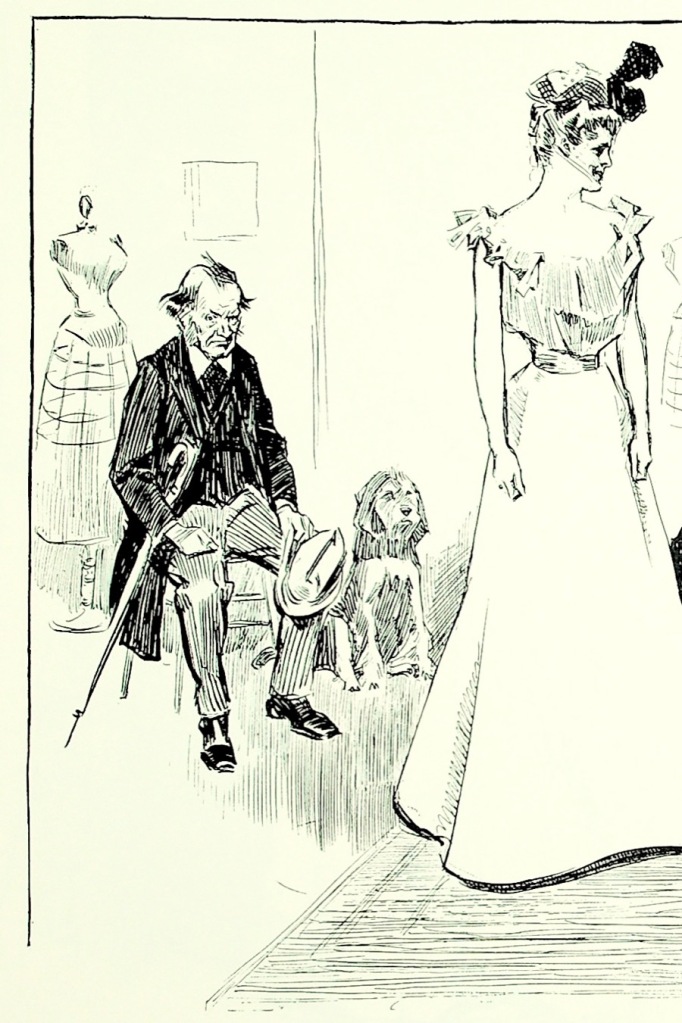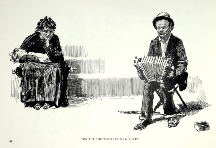 Gibson drew the other end of society too, those who struggled in the first Gilded Age simply to survive. Notice that while the man is in the foreground, the black of the woman’s shawl pulls the eye to her and then one sees the hopeless expression as she holds the sleeping child.