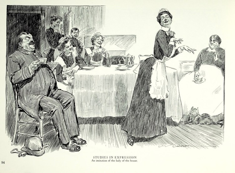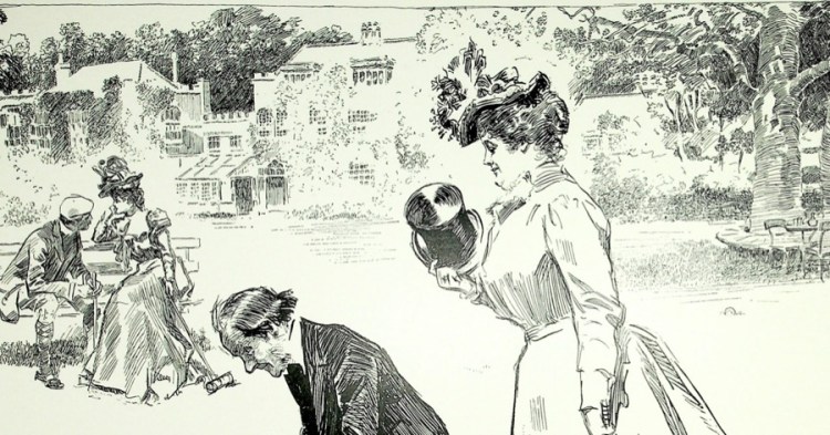 Charles Dana Gibson, the legendary late 19th century pen and ink artist, was an Influencer long before the term came into use to describe someone on social media who “influences” their followers’ tastes in clothes, food, music, where to go on vacation and other lifestyle choices. He drew all kinds of people, as you’ll see, but the young English and American society people who came out of his pen became iconic symbols of an ideal woman and man. And, to this day, people are aware of the “Gibson Girl”, that somewhat distant, dignified personification of an idealized type and a case of life literally imitating art since young women copied the hair styles, clothing and attitude they saw in Gibson’s illustrations.
