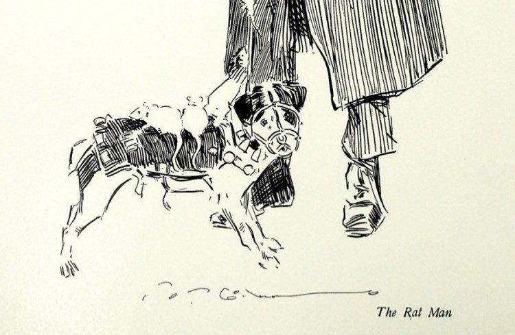Imagine being able to get the local ratcatcher and his dog to pose for you with the results of their work? What a wonderful drawing!